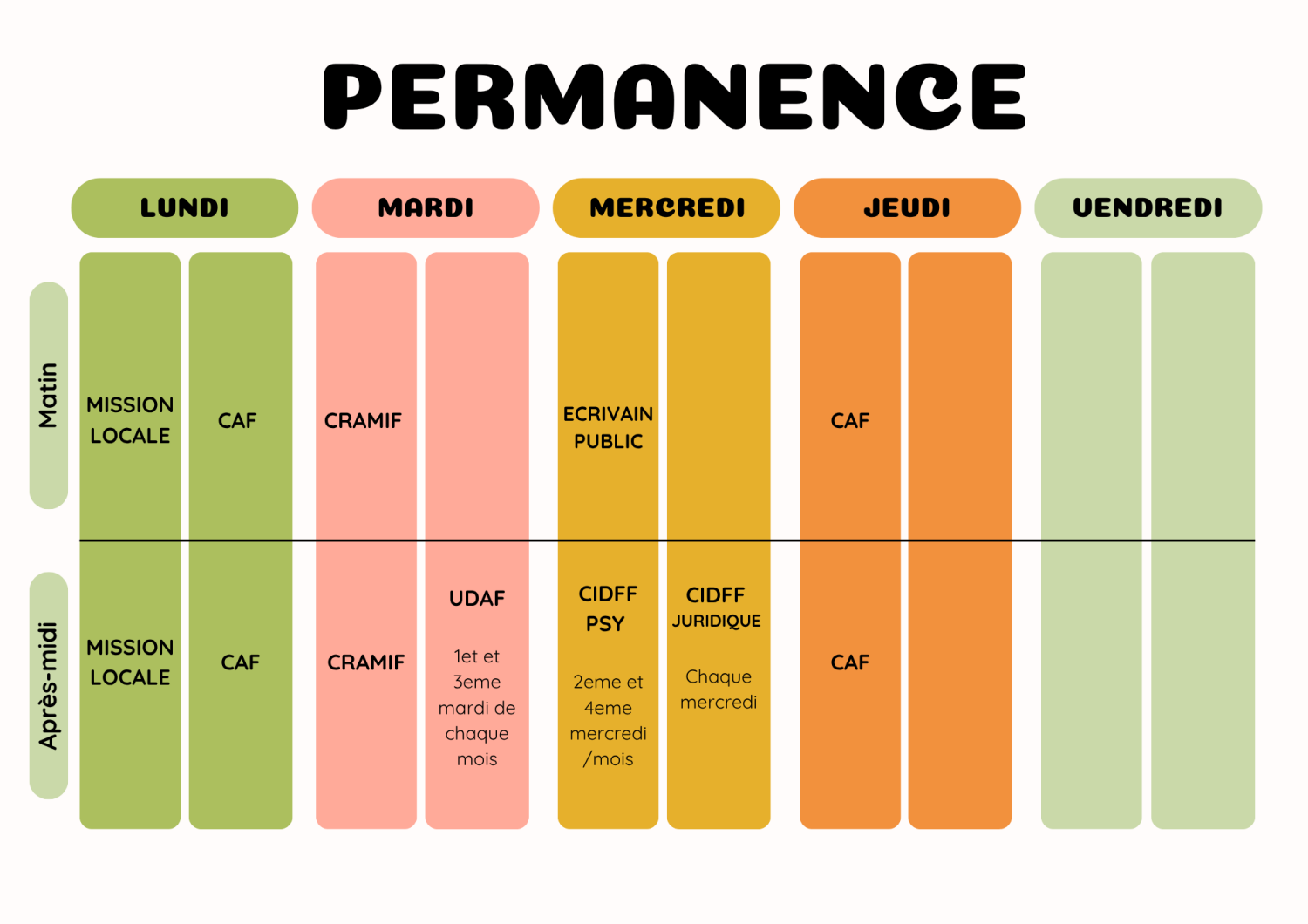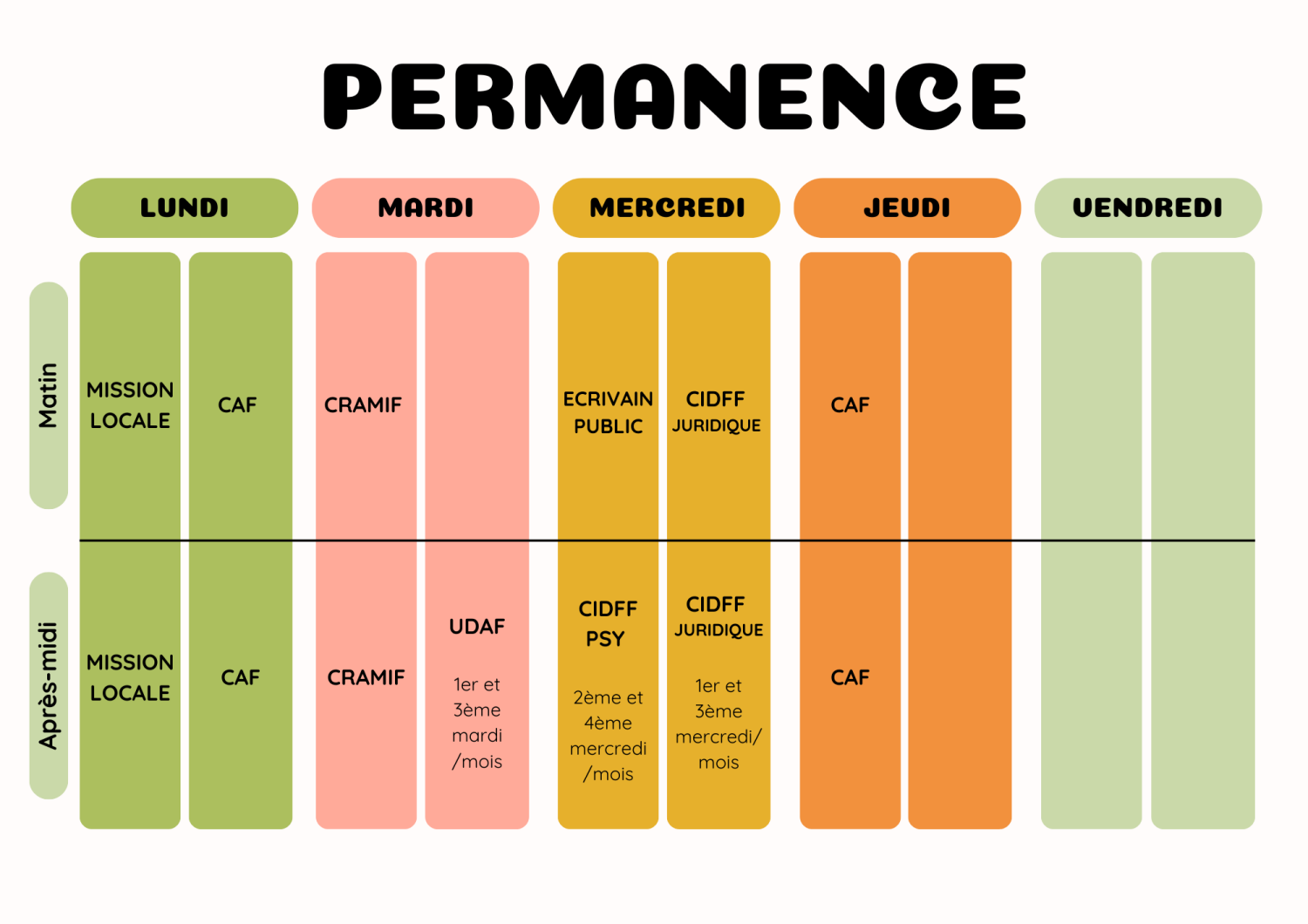Des travailleurs sociaux de la CAF assurent un accueil individuel au centre pour :