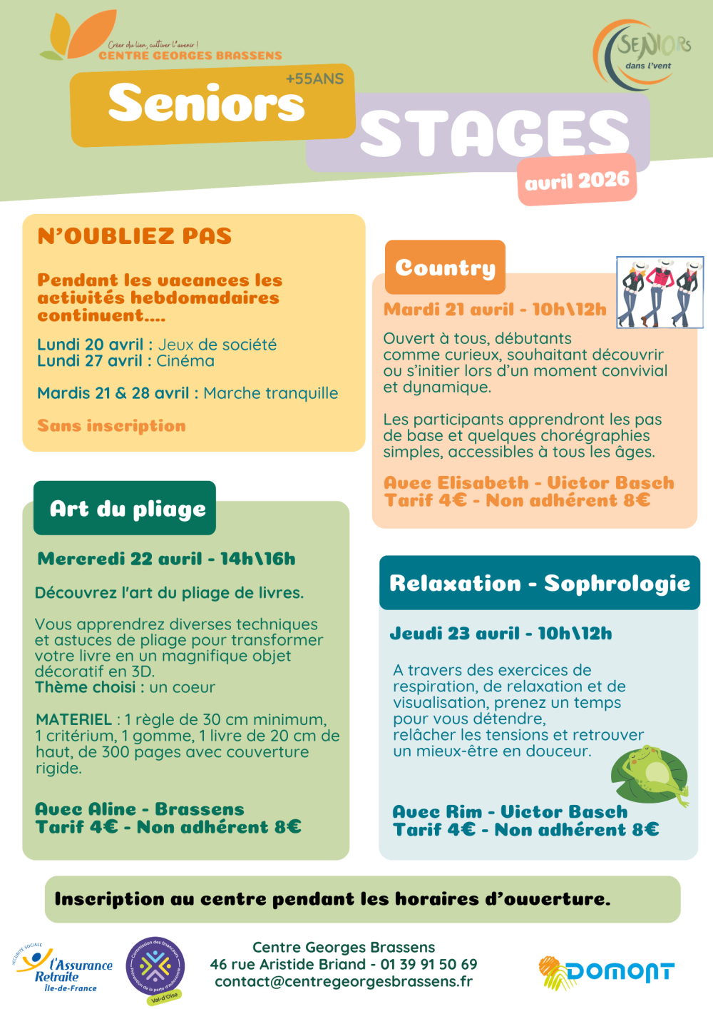 Tél : 01.39.91.50.69 - Courriel : contact@centregeorgesbrassens.fr